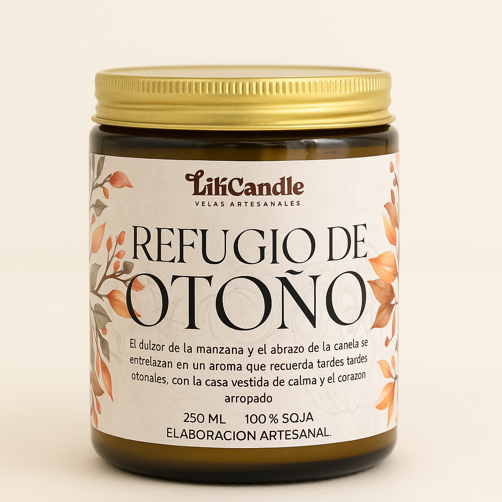 Sumérgete en la esencia cálida y acogedora del otoño con nuestra vela artesanal. Su fragancia comienza con un toque de canela picante que te envuelve al instante, mientras el corazón de la vela despliega un delicioso aroma a manzana y vainilla, creando una sensación reconfortante y dulce. El fondo especiado añade una capa de profundidad, evocando la calidez de un hogar en pleno otoño. Con su mezcla perfecta de notas, esta vela es ideal para iluminar tus momentos más tranquilos o para dar un toque especial a tu hogar en esta temporada otoñal.