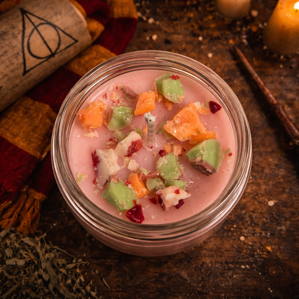 La vela Happee birthdae Es una fragancia cálida y golosa que recuerda a la tarta más dulce recién horneada. Su aroma envuelve el ambiente con una deliciosa mezcla de mantequilla cremosa, vainilla suave y un ligero toque de cerveza dulce que aporta un matiz único y reconfortante, como salido de una cocina mágica. Una vela perfecta para quienes aman los aromas intensos, dulces y nostálgicos que evocan momentos especiales.