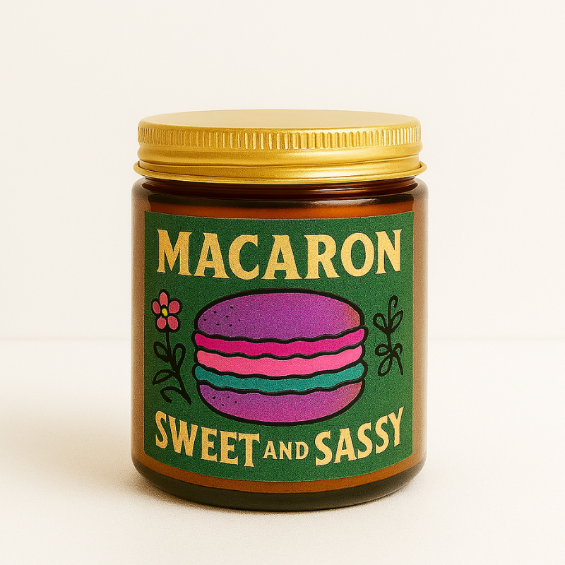La vela Macaron es delicada y sofisticada, esta fragancia evoca el icónico postre francés con notas dulces, especiadas y una base suave de vainilla y madera.
