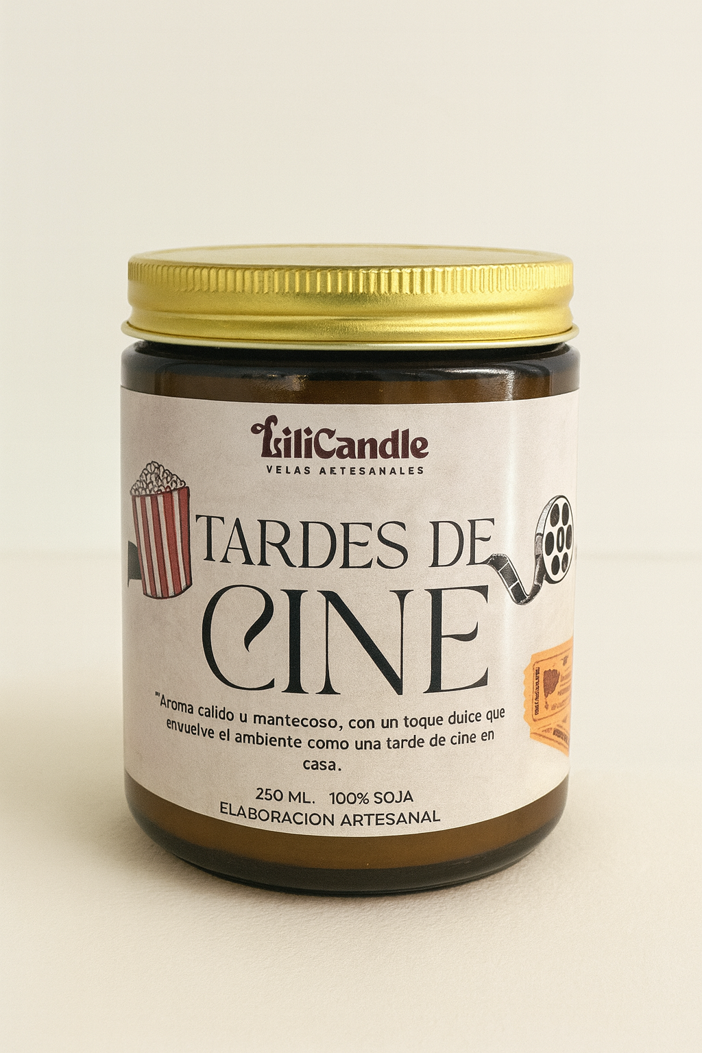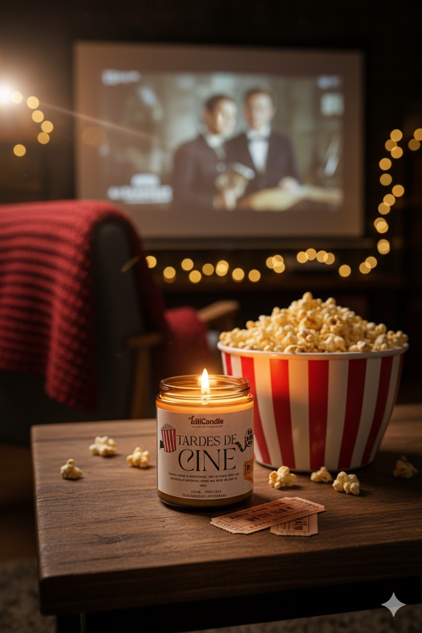La vela Tardes de Cine es dulce, divertida y acogedora, esta vela captura el espíritu de una tarde de películas y palomitas recién hechas.
